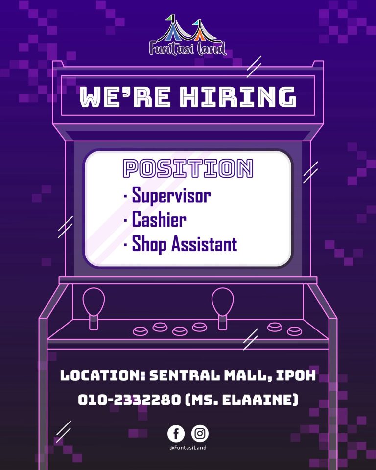 🚀 WE’RE HIRING! FuntasiLand is opening soon at Sentral Mall, Ipoh, and we’re looking for passionate, friendly, and responsible team members to join us! 🎉 📌 Positions Available: • Supervisor • Cashier • Shop Assistant If you enjoy working with…